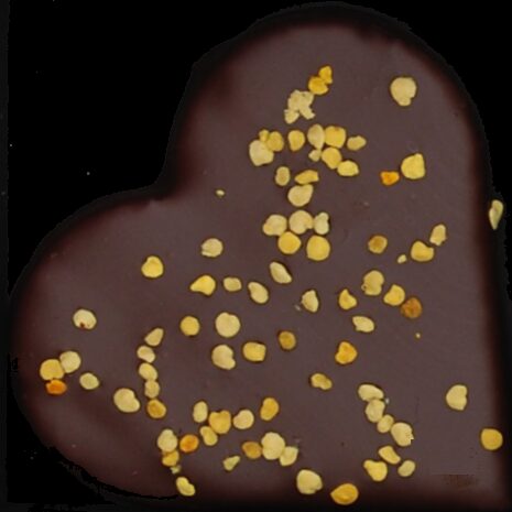 Un cœur de massepain fin et fondant. Les amandes, patiemment broyées, ont été délicatement imprégnées de la liqueur de malt « Honey Garden » de la distillerie de Maredsous, aux notes chaudes et légèrement toastées, puis subtilement adoucies par la rondeur naturelle du miel, qu’évoquent aussi les petits grains de pollen sur l’enrobage de chocolat fondant Sao Tome 72%.