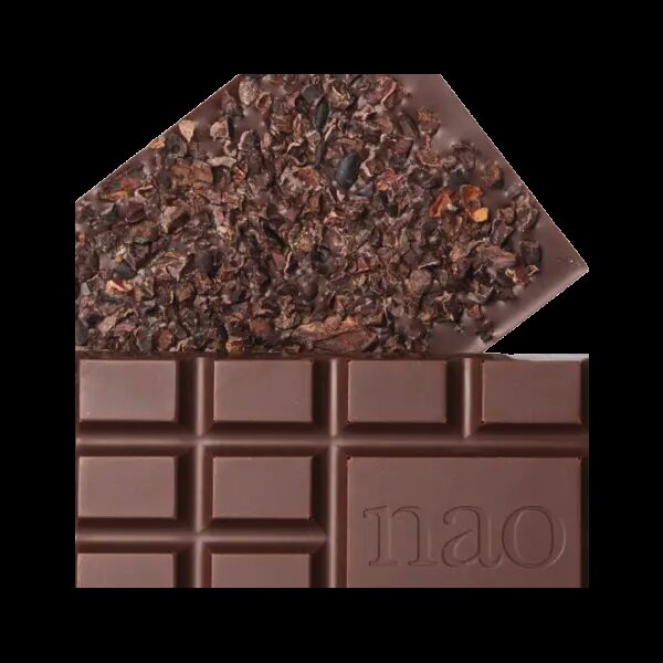 Parsemée d’éclats de fèves torréfiées.