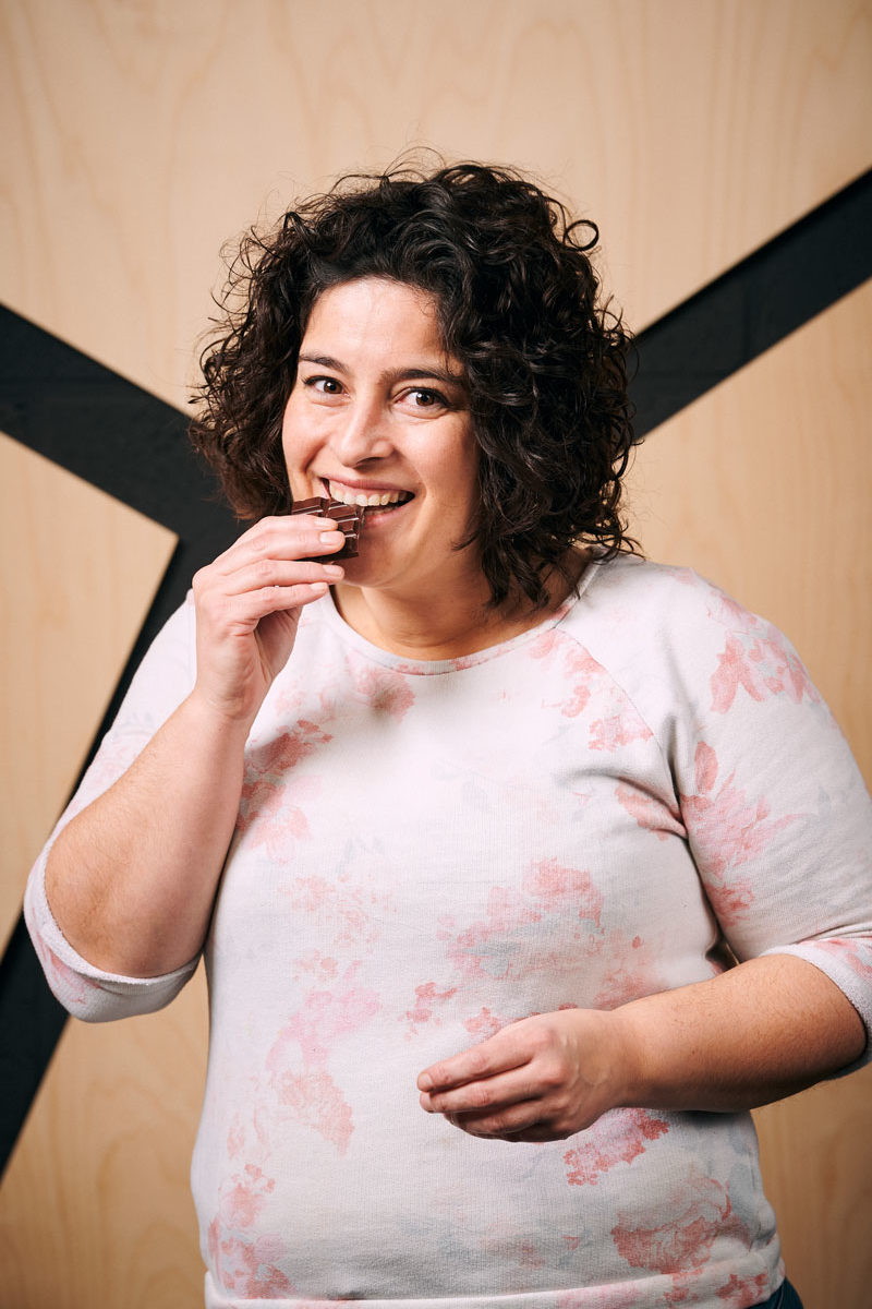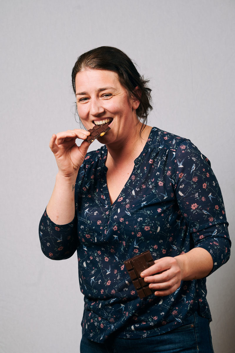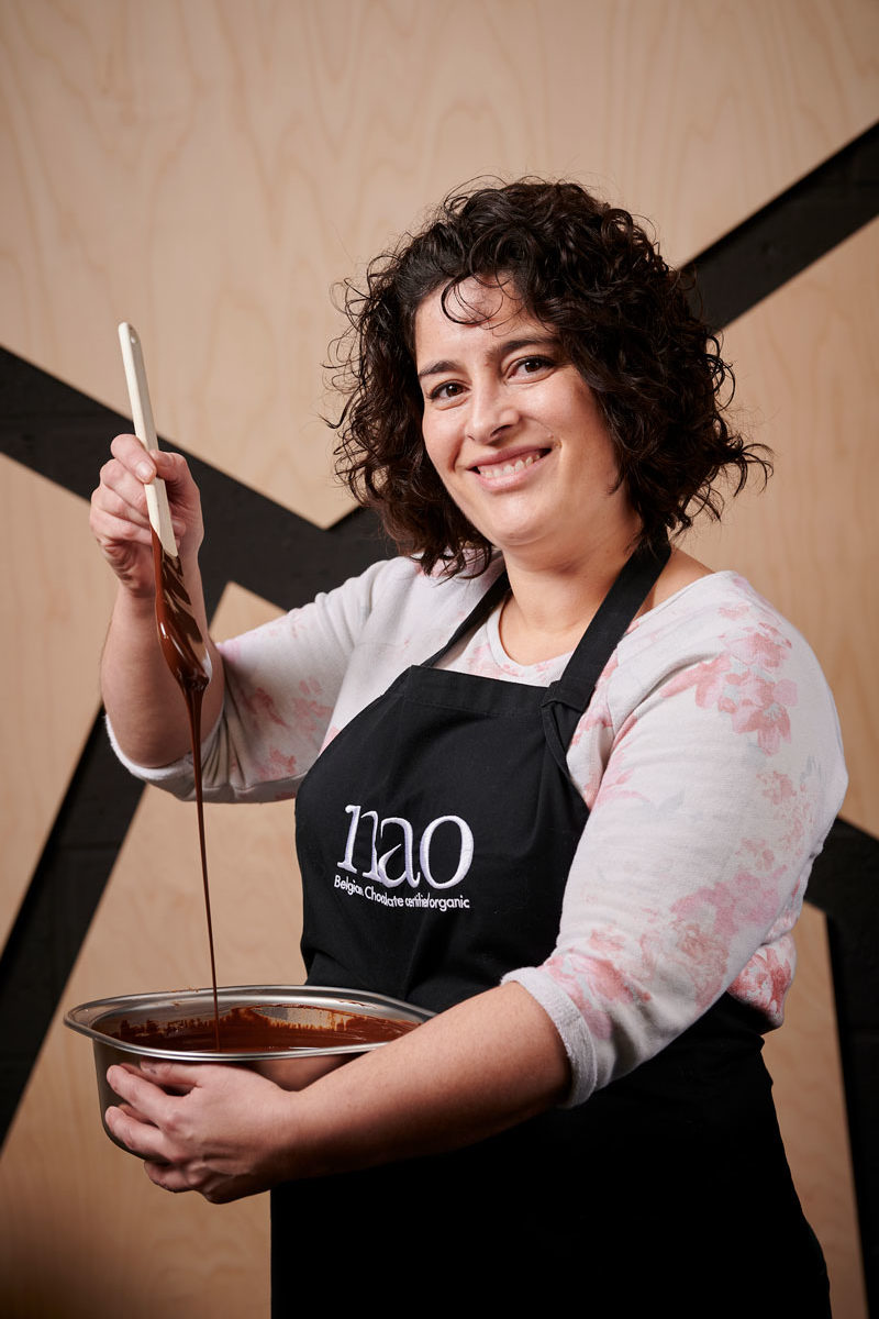 In the production of the bars, Nathalie is in the key position for the making of a smooth and shiny chocolate.